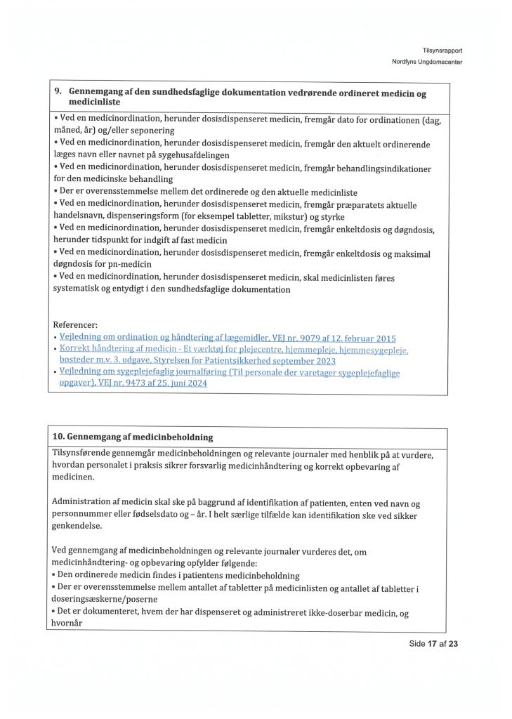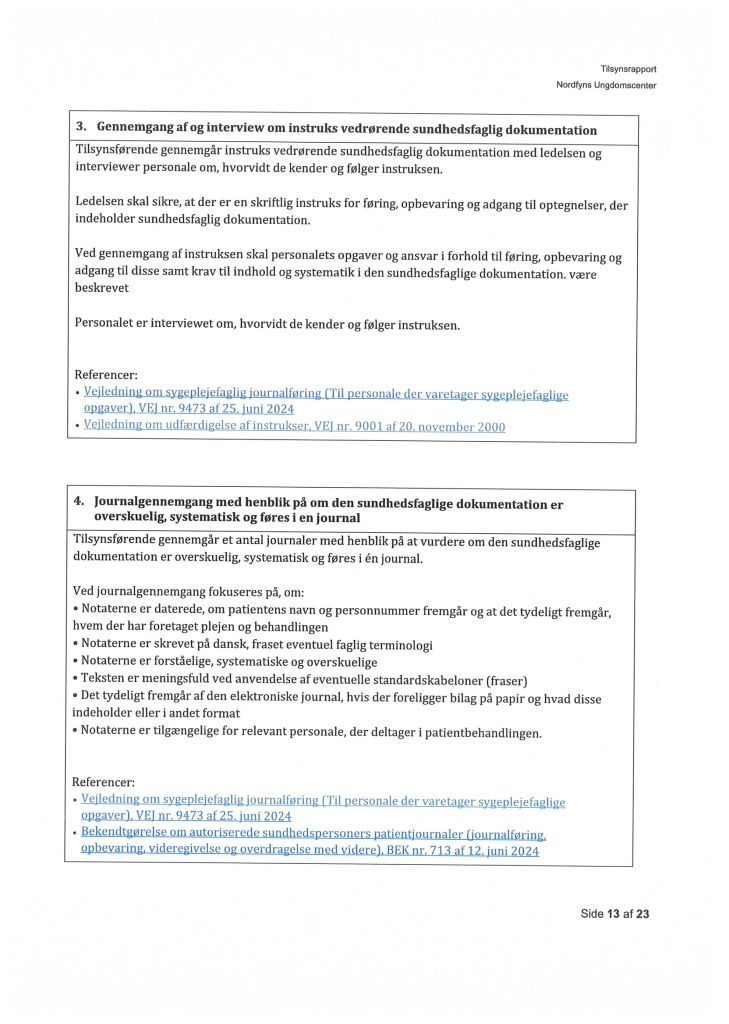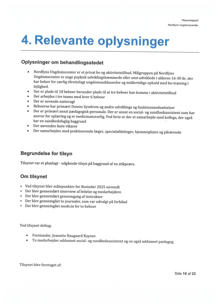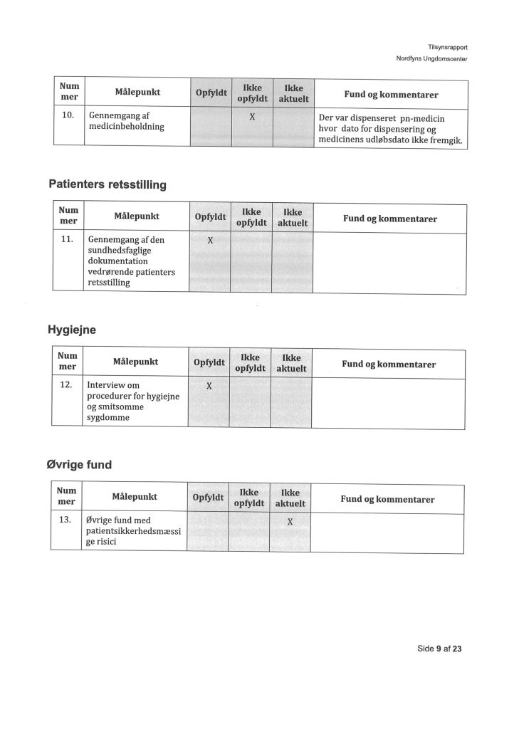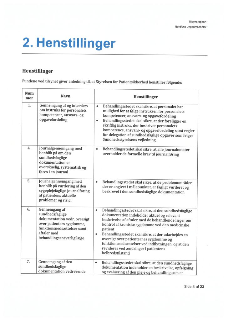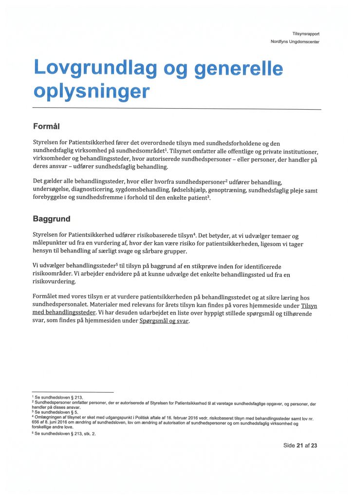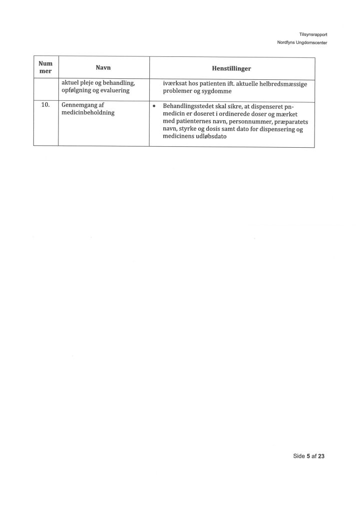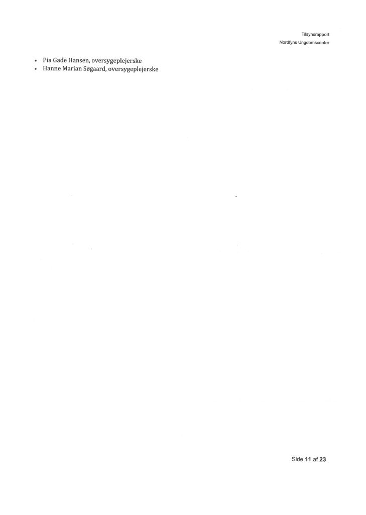 Her ses “Tilsynsrapport Nordfyns Ungdomscenter, Sundhedsfagligt, planlagt – udgående tilsyn”