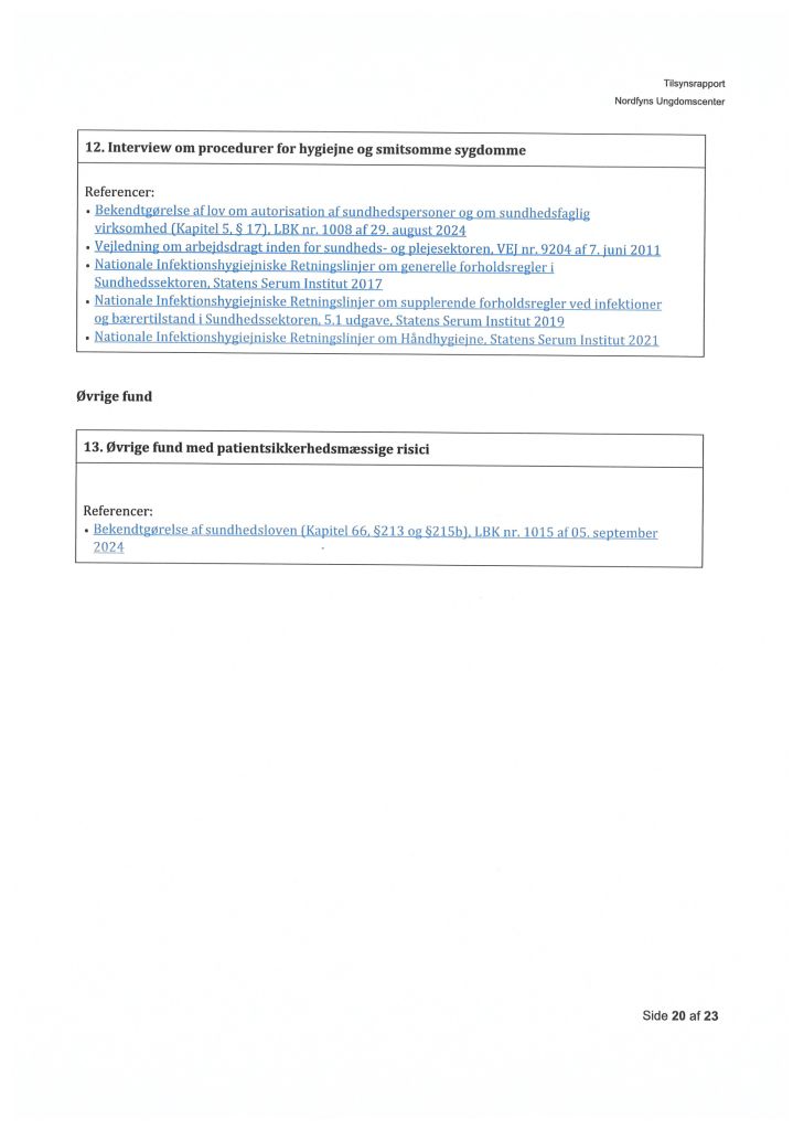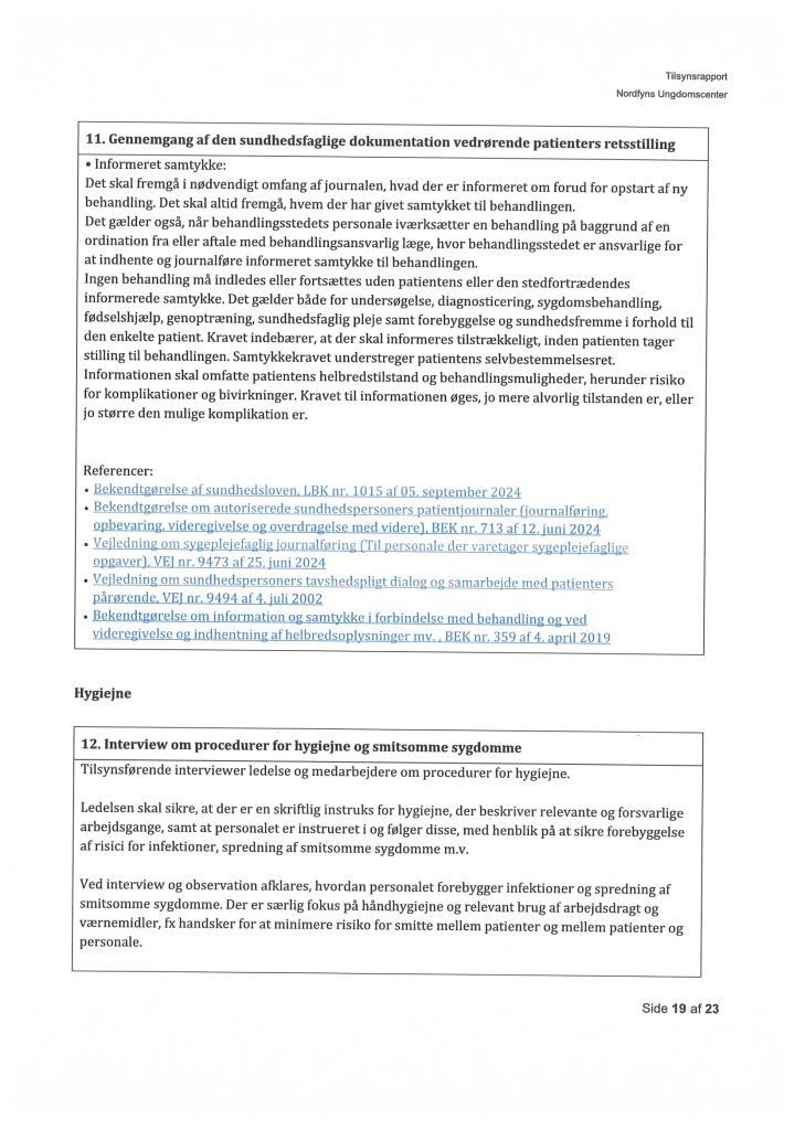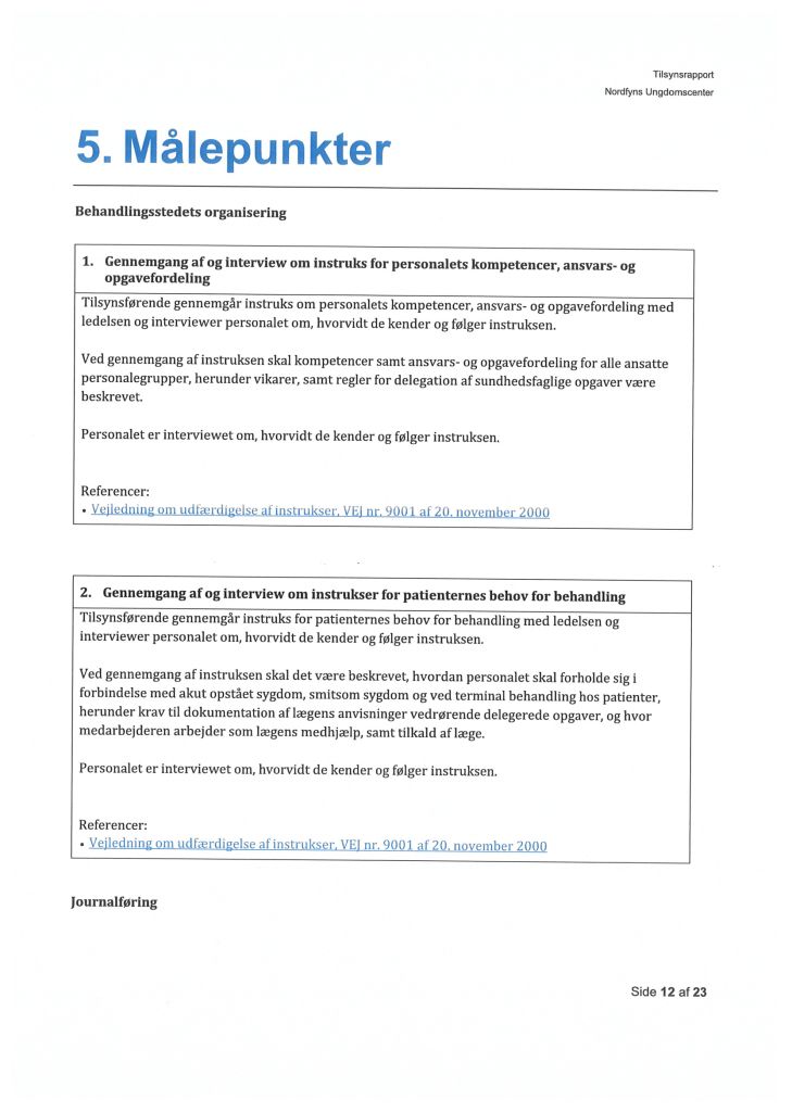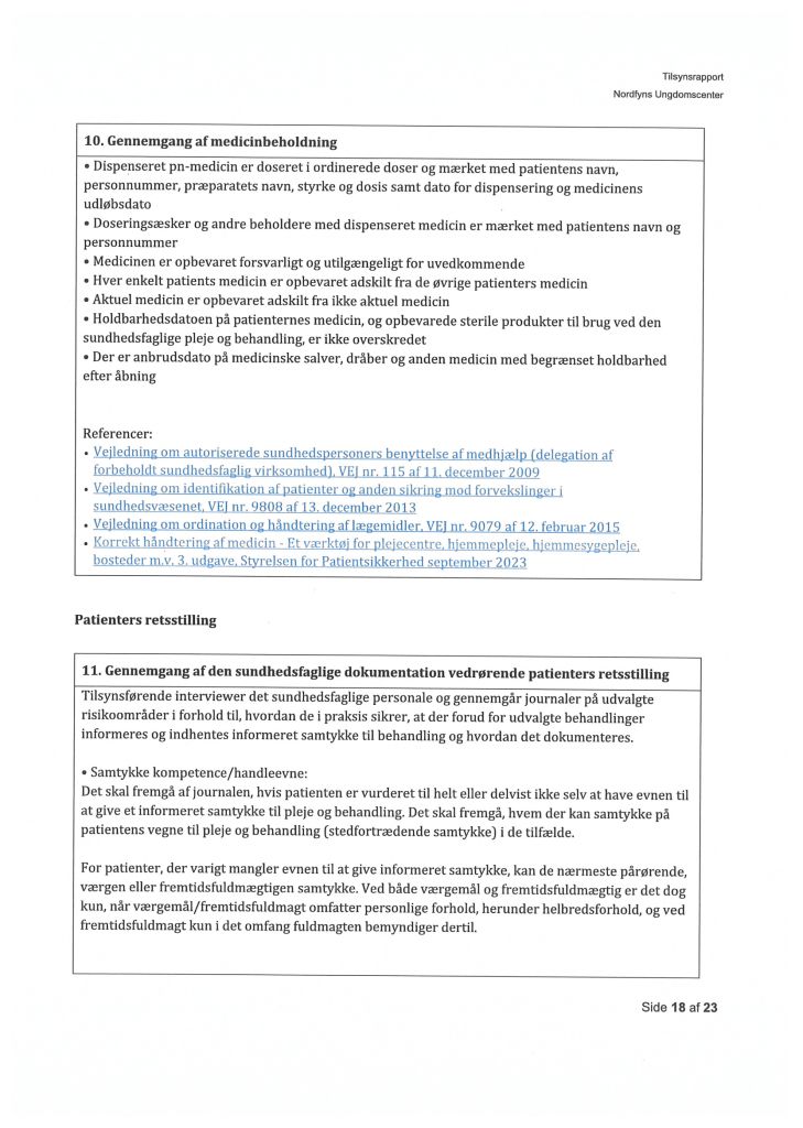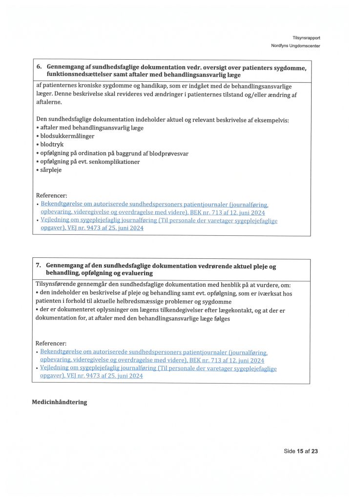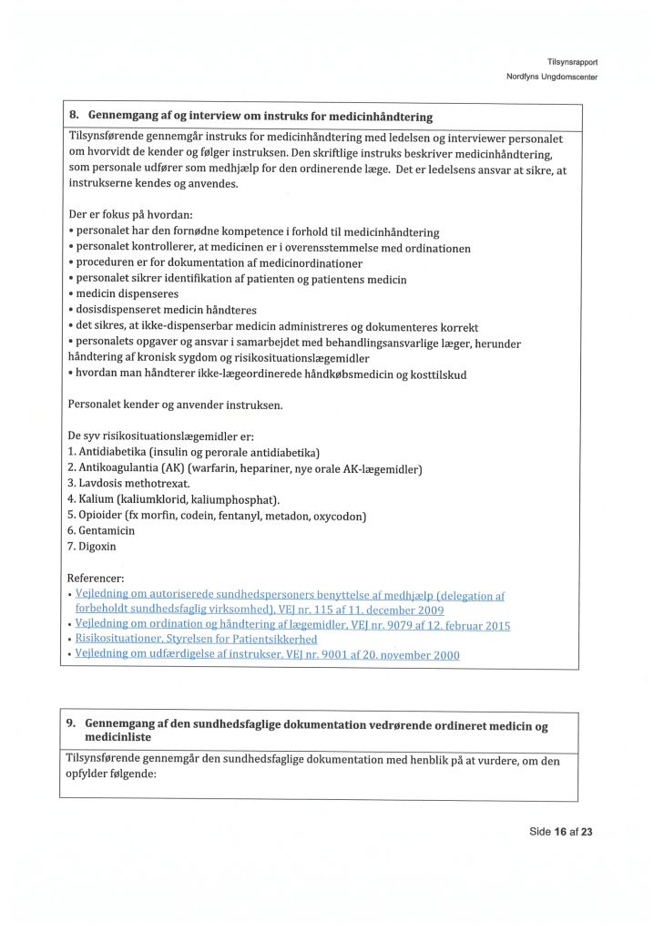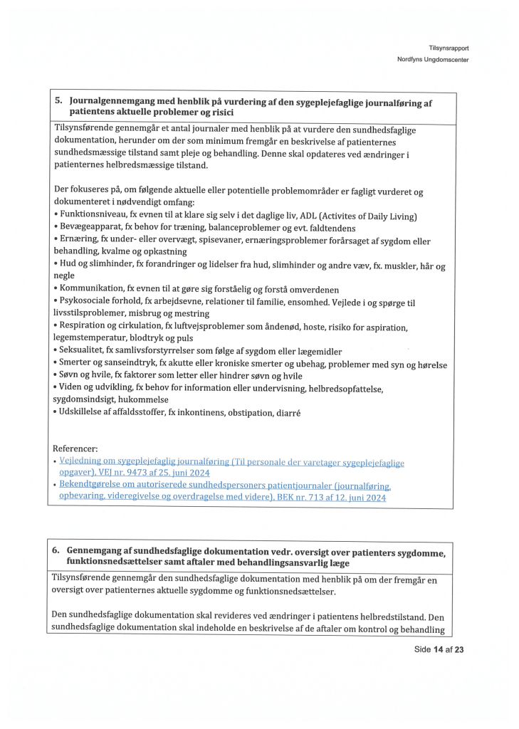 Her ses “Tilsynsrapport Nordfyns Ungdomscenter, Sundhedsfagligt, planlagt – udgående tilsyn”